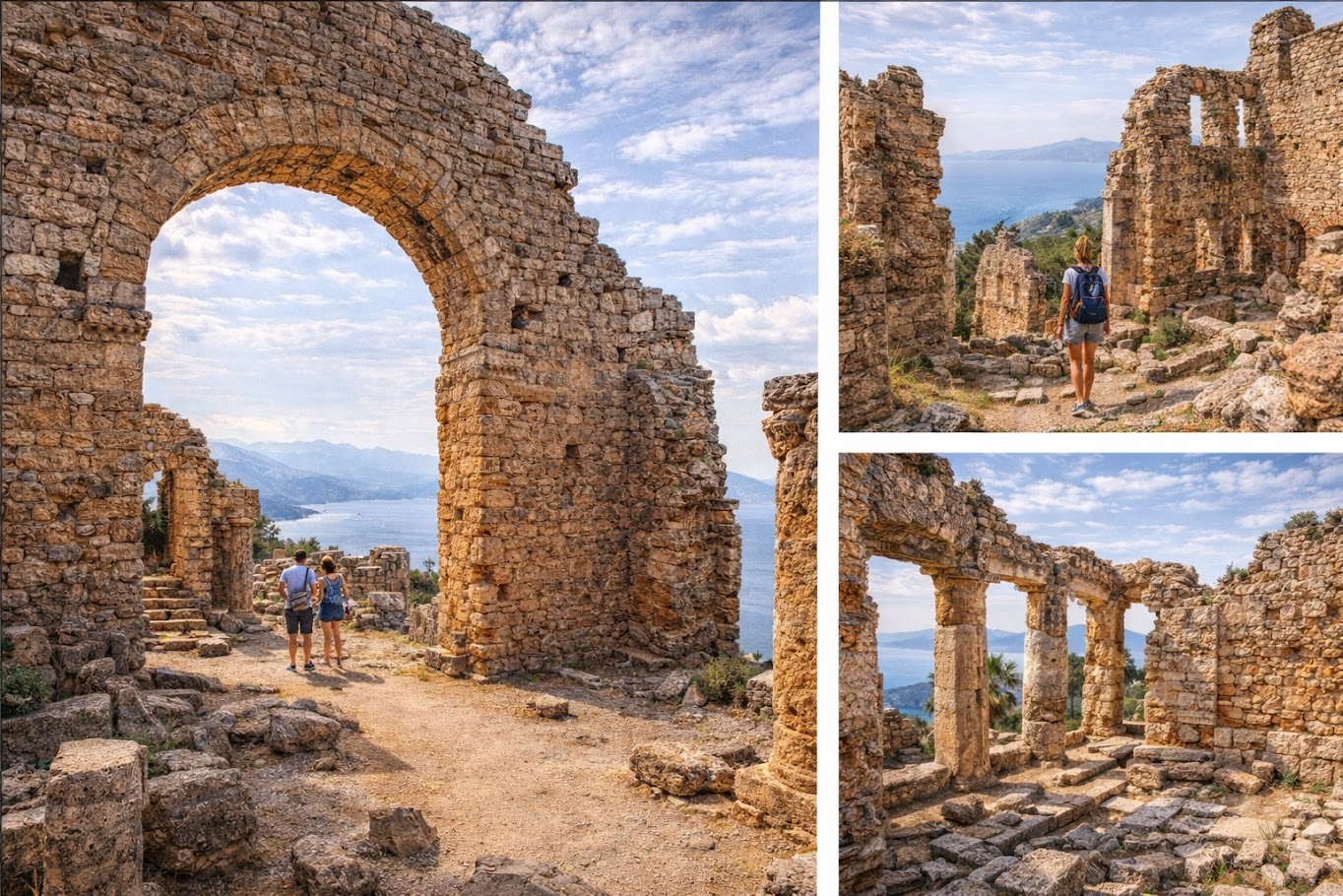 starożytnego miasta Syedra z widokiem na wybrzeże Morza Śródziemnego.